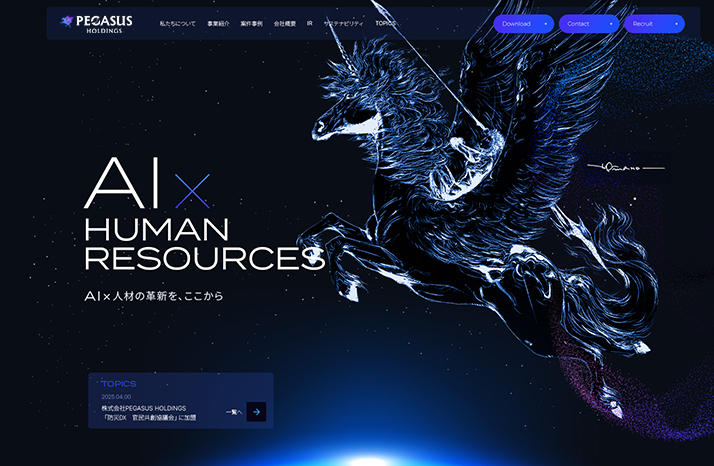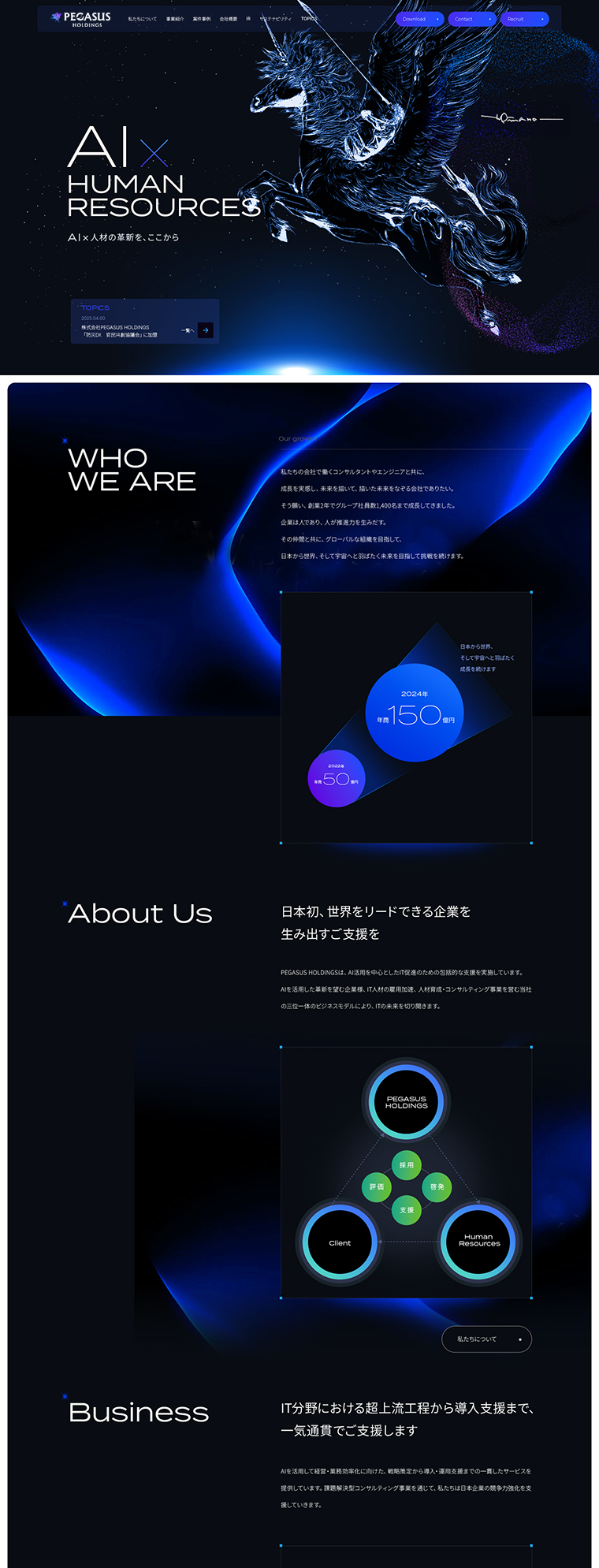 AIコンサル支援を行う、PEGASUS HOLDINGS様のコーポレートサイトのリニューアルを担当させていただきました。