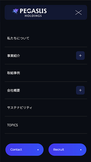 新規取引先・ステークホルダー・採用応募者に対して、PEGASUS HOLDINGS様の「価値」と「未来」を強く印象づけるWEBサイトとなっています。