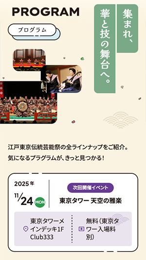 公益財団法人東京都歴史文化財団 サービスサイト制作 – 江戸東京伝統芸能祭