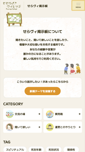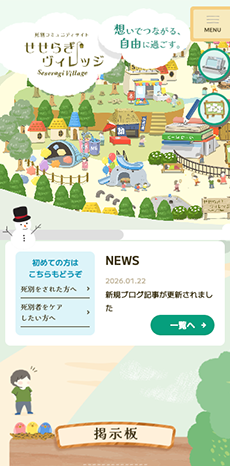 グリーフケア活動をされているせせらぎ様からのご依頼で、死別者の方が集うコミュニティサイトのWeb制作を担当させていただきました。