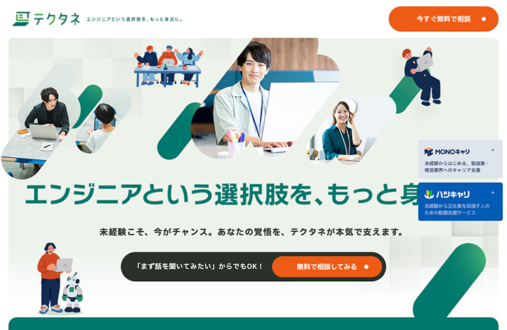 エヌエス・テック株式会社様が立ち上げた、エンジニアを"ゼロから"育てる新規サービス「テクタネ」のWEB制作を担当しました。